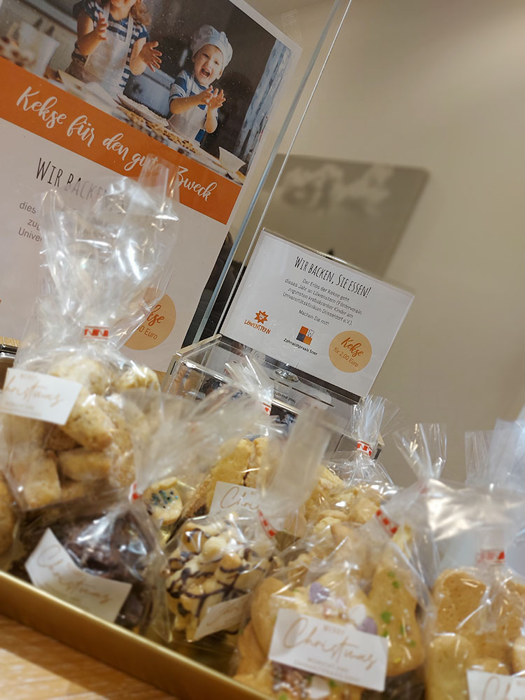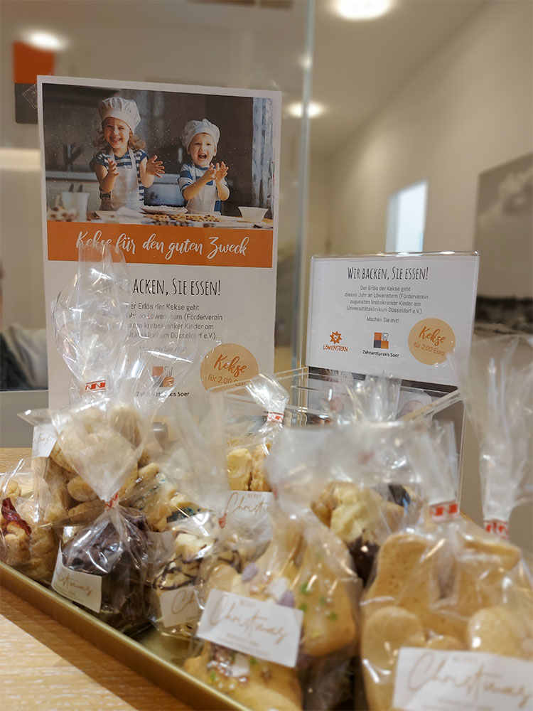 Gerade in der Vorweihnachtszeit möchten wir denjenigen helfen, denen es nicht so gut geht. Deshalb haben wir wieder das Nudelholz geschwungen und Kekse gebacken. Nach dem Motto „Kekse für den guten Zweck – wir backen, Sie essen“ können Sie an unserer Rezeption die selbstgebackenen Kekse für zwei Euro kaufen. Der gesamte Erlös der Aktion geht an Löwenstern, den Förderverein zugunsten krebskranker Kinder am Universitätsklinikum Düsseldorf e.V.